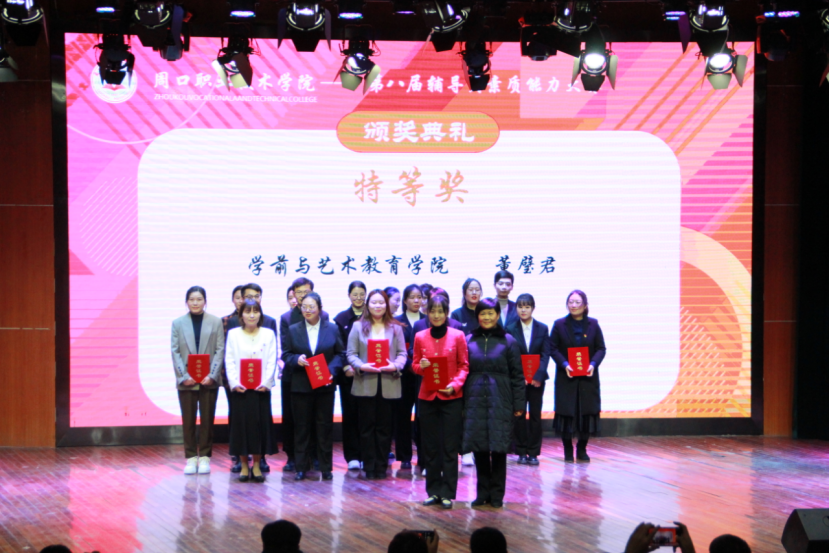 经过激烈角逐,学前与艺术教育学院辅导员董璧君获特等奖;护理学院辅导员赵腾、学前与艺术教育学院辅导员李乐萌、医学院辅导员李晨亮、护理学院辅导员周瑞杰获一等奖;医学院辅导员李琳茵、文化教育学院辅导员刘会心、五年制大专部辅导员王浩瑞、文化教育学院辅导员刘炎、医学院辅导员王珂、经济与管理学院辅导员勾一帆、五年制大专部辅导员种尘妍、体育学院辅导员屠诚虔、汽车与机电工程学院辅导员陈文静、汽车与机电工程学院辅导员苏大体、农牧工程学院辅导员陈强、建筑工程学院辅导员赵武迪、信息工程学院辅导员李慧获二等奖;护理学院辅导员赵腾、学前与艺术教育学院辅导员董璧君、医学院辅导员李晨亮、学前与艺术教育学院辅导员李乐萌、文化教育学院辅导员陈潇、医学院辅导员王慧杰、护理学院辅导员齐鹏翔获理论达人奖;学前与艺术教育学院辅导员董璧君、护理学院辅导员赵腾获优秀案例奖;学前与艺术教育学院辅导员董璧君、经济与管理学院辅导员勾一帆获谈心谈话优秀奖;医学院、学前与艺术教育学院、护理学院获优秀组织奖。