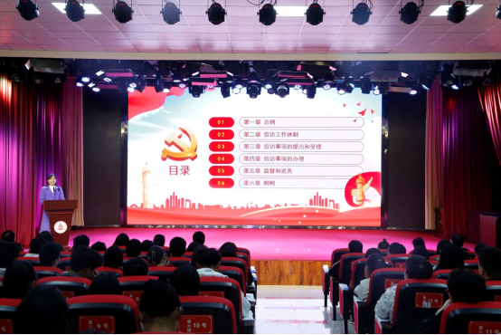 学校法治科工作人员从《条例》出台的背景、新时代信访工作的总体要求、信访工作体制和工作格局、信访事项处理程序、信访工作监督体系等内容进行了详细解读。通过此次宣讲,有效提升了师生群众对《条例》的知晓度,切实提高了师生群众对《条例》颁布实施重大意义的理解和把握,在全校大力营造了办事依法、遇事找法、解决问题用法、化解矛盾靠法的良好环境。