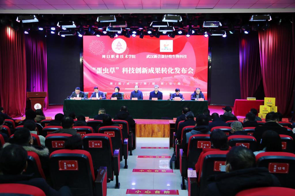 为深入实施创新驱动,切实推进科教融汇、产教融合、校企合作,2月6日下午,金年会jinnianhuicom“蛋虫草”科技创新成果转化发布会在开元校区艺术演播厅隆重举行。市人大常委会副主任刘建中,副市长秦胜军,市政协副主席闫淑娟,学校党委书记刘士欣,市科技局局长韦刚,深圳前海卖货郎投资发展有限公司执行总裁、武汉新合蛋仔煌生物科技有限公司董事长张玉生出席。校长李清臣主持。