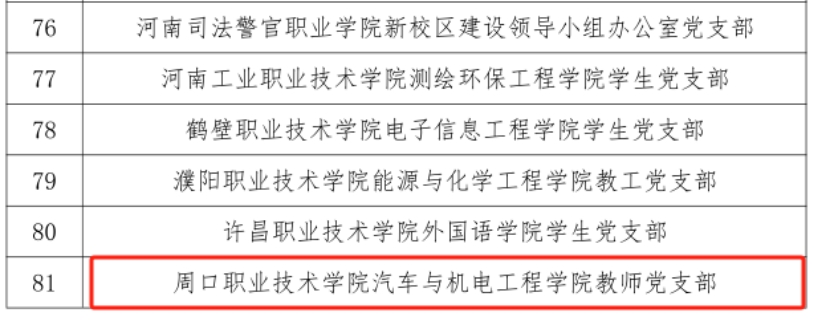 近日,河南省教育厅公布了第二批全省高校党建工作强基引领“三级联创”及“双带头人”教师党支部书记工作室评选结果,金年会汽车与机电工程学院教师党支部获评“全省党建工作样板支部”。