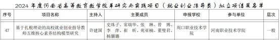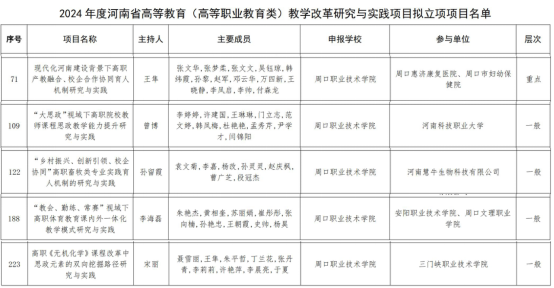 近日,河南省教育厅发布了《关于公布2024年度河南省高等教育教学改革研究与实践项目的拟立项项目名单》,金年会6个项目获批立项。其中,高等职业教育类5项、就业创业指导类1项。