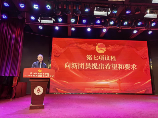 为深入贯彻习近平总书记关于青年工作的重要思想,增强共青团的思想政治引领作用,进一步增强团组织的凝聚力和向心力,4月30日上午,校团委在开元校区艺术演播厅举行金年会jinnianhuicom2024年新团员入团仪式。学校党委副书记、工会主席郭汝礼出席,团委全体成员、各院部团总支书记、新发展团员及优秀团员代表参加。仪式由校团委书记闻檑主持。