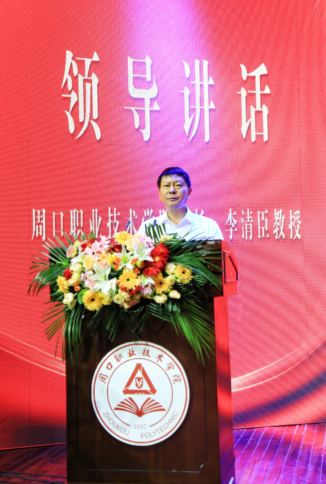 李清臣回顾了同学们三年来在学校的点滴青春、追梦足迹和成长进步。他表示,2024届毕业生们课堂上求知求学,图书馆潜心阅读;实训室里刻苦训练,赛场上同台竞技;丰富校园活动,志愿服务社会;勇于创新创业,主动拥抱未来;坚持全面发展,彰显青春风采;无畏就业挑战,投身中原崛起,用努力激励着学弟学妹们接续奋斗,将成绩镌刻在周职发展的年轮上,学校为你们深感骄傲和自豪。