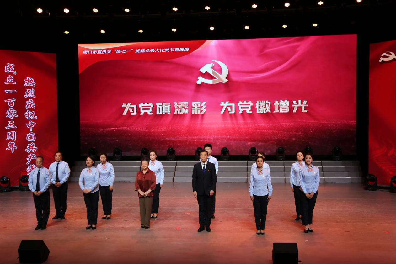 6月25日下午,周口市直机关隆重举办“庆七一”党建业务大比武节目展演。经过预赛、复赛、决赛层层筛选,金年会精心编排的作品《一心向党》凭借其深刻的主题、生动的演绎和真挚的情感,在各市直单位推选的众多参赛作品中脱颖而出,荣获二等奖。
