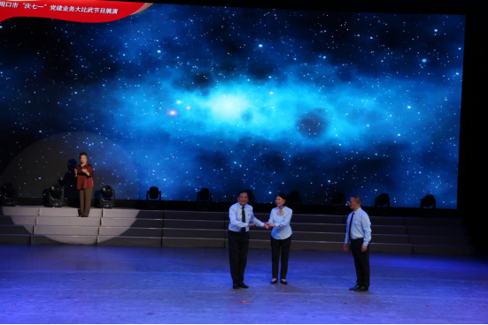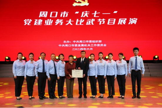 为深入学习贯彻落实党的二十大精神和习近平总书记关于党的建设和组织工作的重要思想,热烈庆祝中国共产党成立103周年,全面展示我市基层党组织党建业务开展成效和创新做法,6月27日,周口市委组织部、周口市委直属机关工作委员会联合举办“庆七一”党建业务大比武节目展演。金年会精心编排的作品《一心向党》凭借其深刻的主题、生动的演绎和真挚的情感,从众多作品中脱颖而出,荣获一等奖。