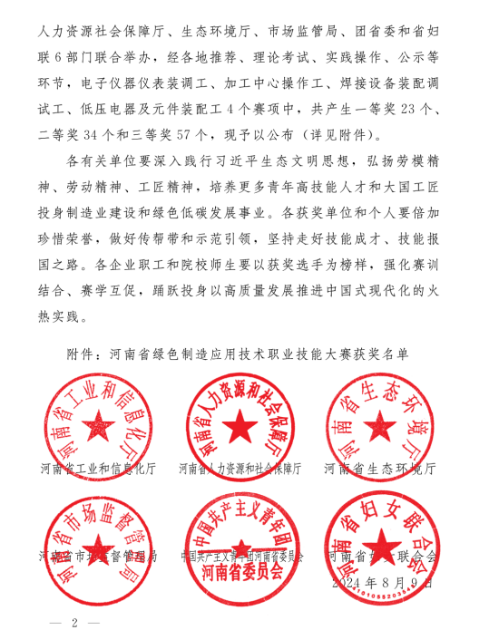 河南省绿色制造应用技术职业技能大赛是省级行业一类赛,由省工业和信息化厅、人力资源社会保障厅、生态环境厅、市场监管局、团省委和省妇联6部门共同主办,济源职业技术学院、金年会jinnianhuicom承办,旨在弘扬劳动精神、劳模精神、工匠精神,培养更多青年高技能人才和大国工匠投身制造业建设和绿色低碳发展事业。大赛共设置“电子仪器仪表装调工”“加工中心操作工”“低压电器及元件装配工”和“焊接设备装配调试工赛项”四个赛项。