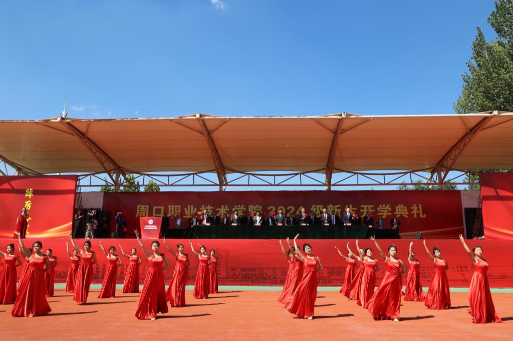 开学典礼在歌伴舞《我和我的祖国》中落下帷幕。2024级新生们表示,将珍惜韶华、奋发有为,勇做走在时代前列的奋进者,在周职书写属于自己的华丽篇章。