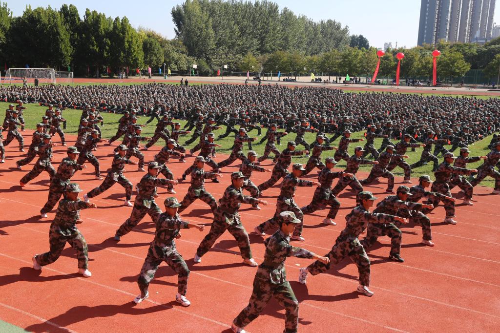 在嘹亮的国歌声中,军训会操拉开帷幕。分列式表演中,各方队精神抖擞、步伐铿锵有力,依次接受检阅,充分展示了新时代大学生朝气蓬勃、积极向上的青春风采。特色方阵表演以刺杀操、军体拳、战场救护、应急棍、警棍盾牌操等形式展开,动作整齐,士气高昂,赢得阵阵掌声与喝彩。