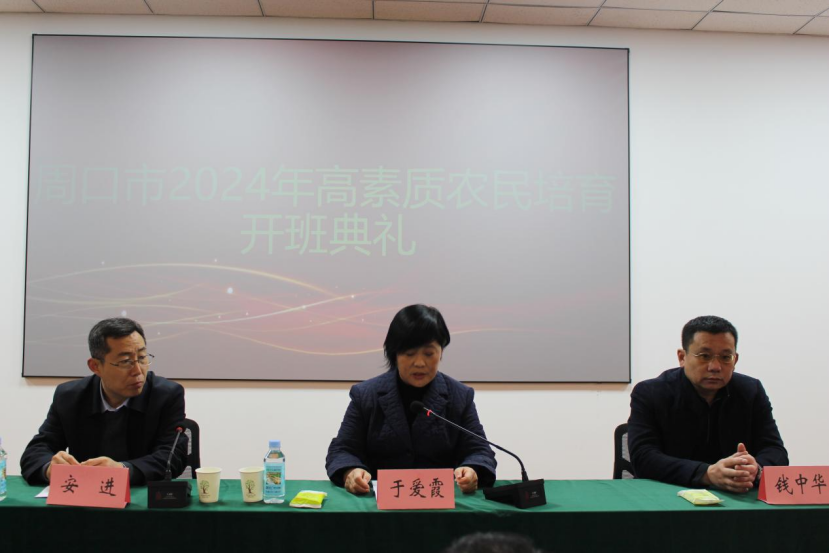 仪式上,于爱霞致欢迎词,介绍本期培训班的授课教师、培训课程及培训周期,并强调培训纪律。安进在开班讲话中传达了上级文件精神,并结合周口市农业发展情况、发展需求,强调落实培训任务,要求培训一批“有文化、懂技术、善经营、会管理”的高素质农民。
