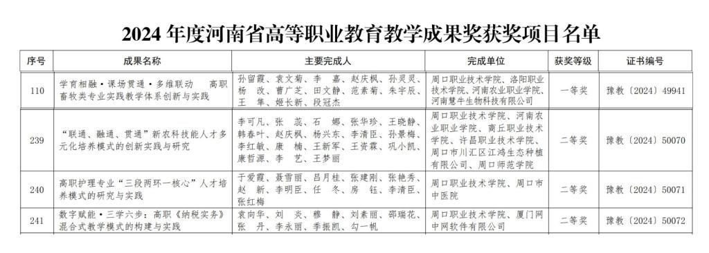 近日,河南省教育厅公布了2024年度河南省高等教育教学成果奖获奖名单,金年会荣获一等奖1项、二等奖3项。