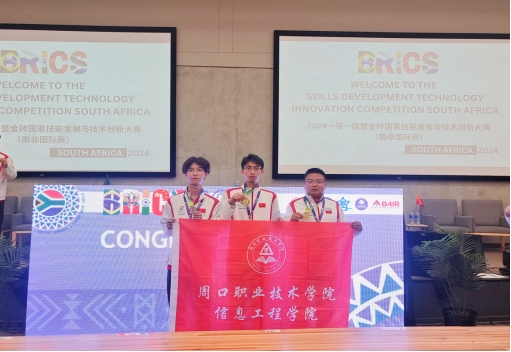 11月29日,备受瞩目的2024一带一路暨金砖国家技能发展与技术创新大赛(南非国际赛)在南非约翰内斯堡市圆满落下帷幕。此次大赛中,由金年会信息工程学院张矿伟老师指导的两个学生团队参赛项目以其实用性、创新性、前瞻性在竞争中脱颖而出。其中,任俊臣同学负责的《巡检先锋-化工智能巡检机器人》项目以小组第一获得金奖,郝佳浩同学负责的《盲行使者-盲人智能导航辅具》项目获得银奖,创学校在该赛项历史最好成绩。