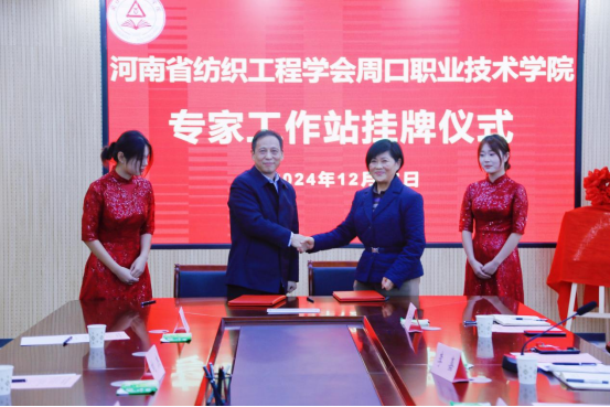 12月15 日下午,河南省纺织工程学会金年会jinnianhuicom专家工作站揭牌仪式在金年会开元校区第六会议室成功举行。河南省纺织工程学会党委副书记、常务副理事长杨润凯,金年会jinnianhuicom党委副书记李明臣、副校长于爱霞出席。教务处处长李嘉主持。