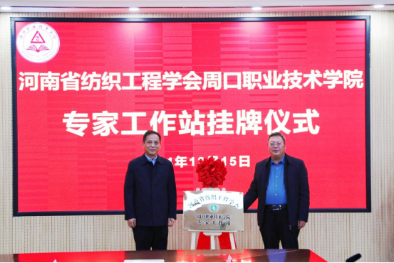 杨润凯、李明臣为河南省纺织工程学会金年会jinnianhuicom专家工作站揭牌。