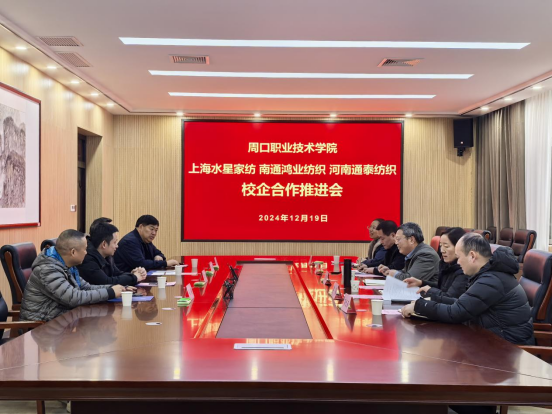 12月19日下午,金年会jinnianhuicom与上海水星家用纺织品股份有限公司、南通鸿业纺织有限公司、河南通泰纺织有限公司召开校企合作推进会。校党委副书记李明臣出席,经济与管理学院、纺织服装学院负责人及师生代表参加。教务处处长李嘉主持。
