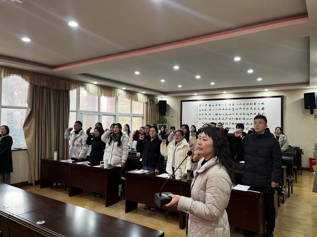 开班仪式上,唐文杰宣读培训方案并强调此次培训的目的及纪律要求,并带领新聘教师进行入职宣誓,以铮铮誓言表达为党育人、为国育才的初心使命;新聘教师赵坤宇作代表发言。