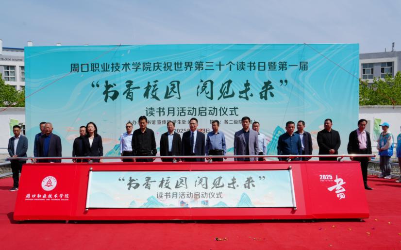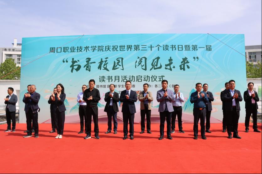台上领导共同按下仪式启动键,开启画卷台,金年会庆祝第30个“世界读书日”暨第一届“书香校园 阅见未来”读书月活动正式启动。