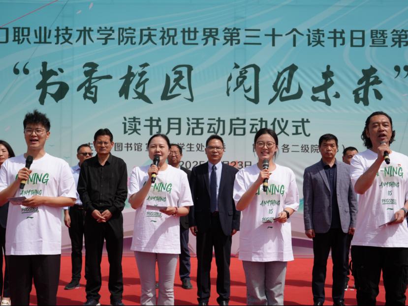 4月23日上午,由校图书馆、宣传部、学生处、团委联合主办的金年会jinnianhuicom庆祝第30个“世界读书日”暨第一届“书香校园 阅见未来”读书月启动仪式在开元校区湖心广场成功举办。副校长王隼出席,相关职能部门负责人、各二级院部党总支书记及师生代表 1000余人参加。宣传部部长万四新主持。