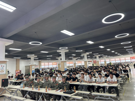 征兵宣讲会在学校馨苑餐厅同步进行,吸引1000余名学生参加。征兵宣传视频展现了新时代军人保家卫国的使命担当与热血风采,6位宣讲团成员结合自身的部队成长经历,从政策解读、职业发展、个人成长等入手,全方位介绍大学生参军入伍的广阔前景,激发同学们的参军热情,让国防教育课堂充满感染力,为有意向投身国防事业的学生注入一剂“强心针”。