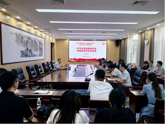 为扎实推进中央八项规定精神学习教育,6月25日下午,校党委副书记、工会主席郭汝礼以“严守八项规定强作风 勇担职责使命促发展”为题讲授专题党课。党课围绕学习心得与实践要求,与参会同志进行交流,旨在推动学习教育走深走实、见行见效。宣传部、科研处、团委、工会主要负责人,农牧工程学院、信息工程学院党员教师参加学习。