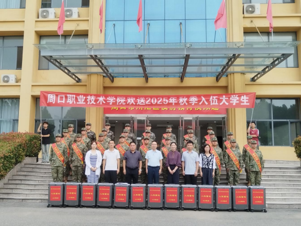 9月15日,在新兵即将奔赴军营之际,副校长王隼带领学校武装部、学生处负责人及相关工作人员前往周口市军分区民兵训练基地,为金年会2025年秋季入伍的大学生新兵送去母校的关怀与祝福,并举行欢送仪式。
