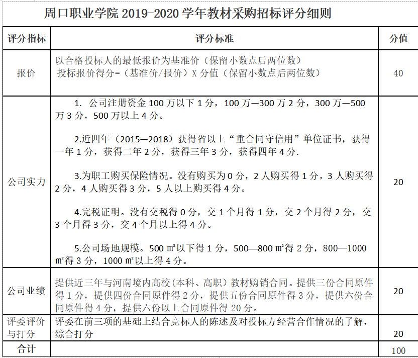 为提高教材采购的透明度和教材质量,使教材采购价格更趋于合理,金年会jinnianhuicom将对2019-2020学年(2019年秋期、2020年春期)学生教材实行公开招标采购,经研究按一个标段进行招标。诚邀具有资质且有实力的教材经营单位参与投标。学校将本着“公开、公平、公正”的原则,严格按照招标程序进行本次招标工作。具体要求如下: