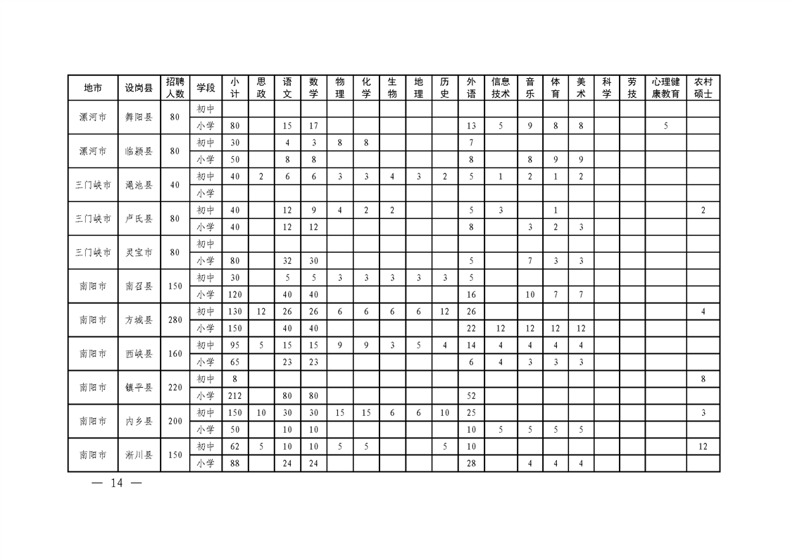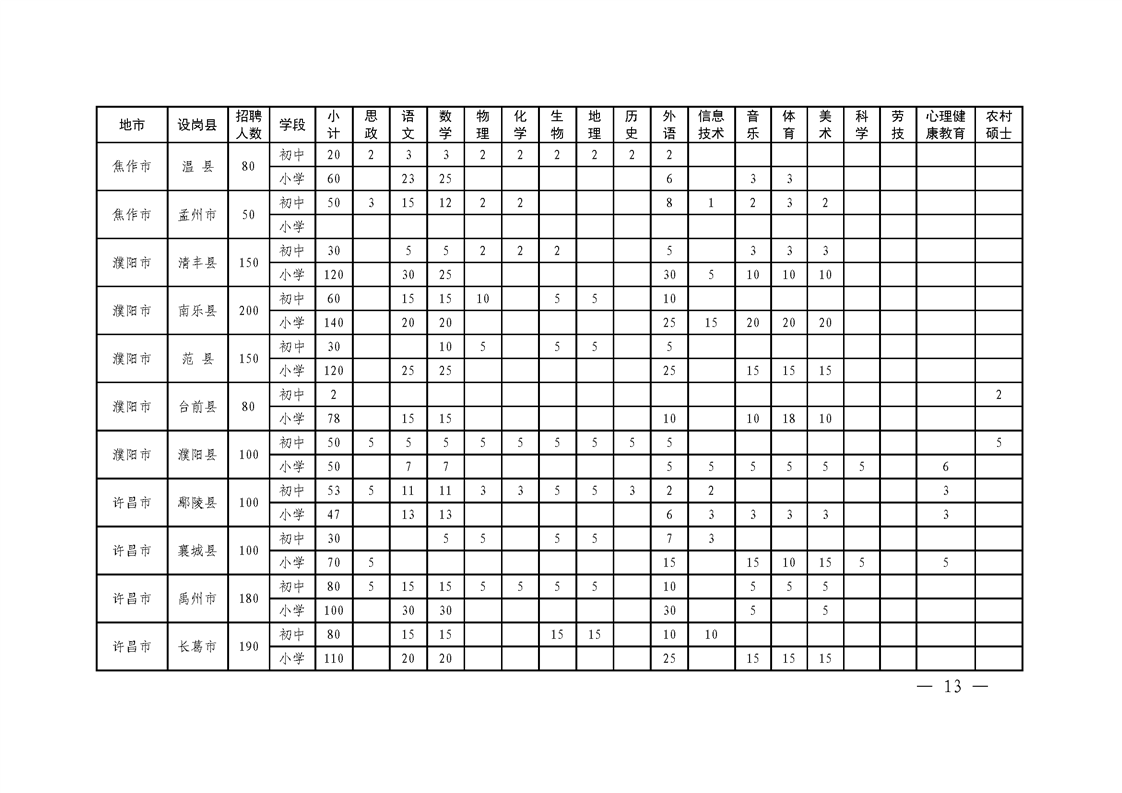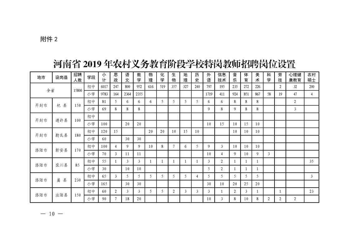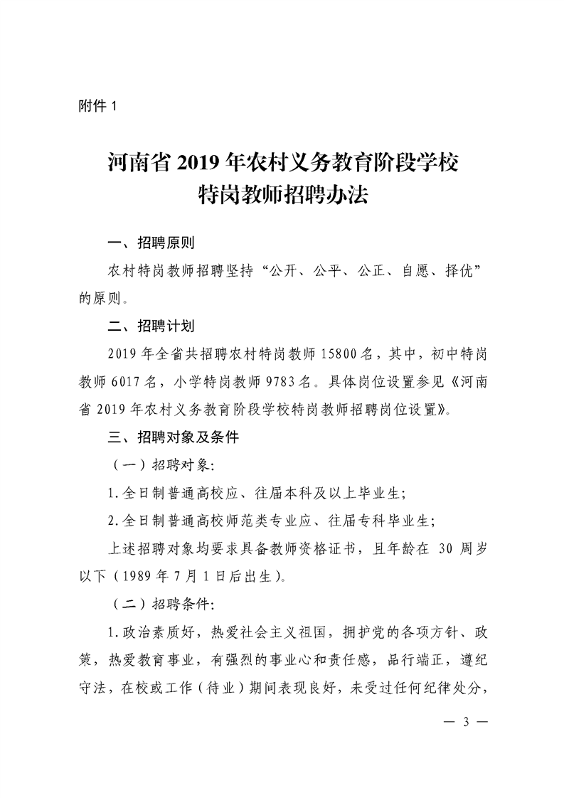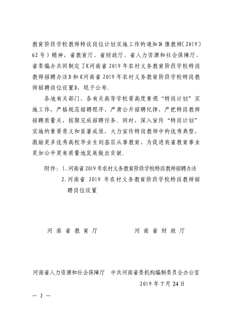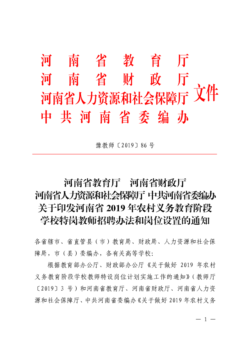 转发河南省教育厅 河南省财政厅 河南省人力资源和社会保障厅 中共河南省委编办 关于印发河南省2019 年农村义务教育阶段 学校特岗教师招聘办法和岗位设置的通知
