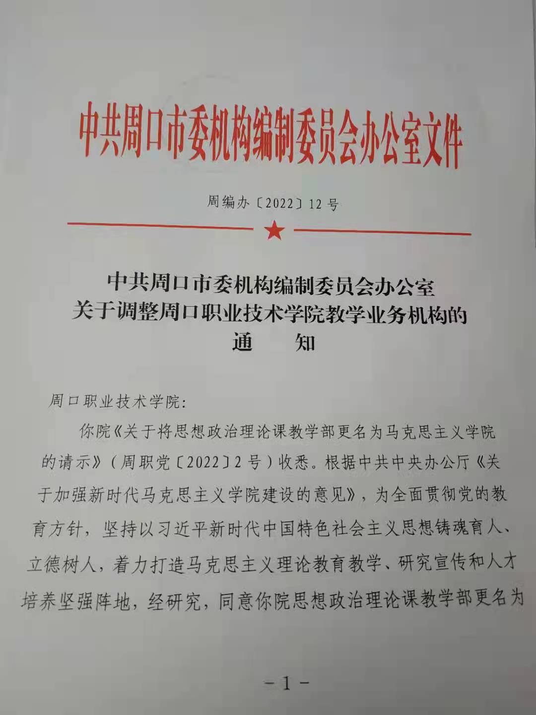 中共周口市委机构编制委员会办公室关于调整金年会jinnianhuicom教学业务机构的通知