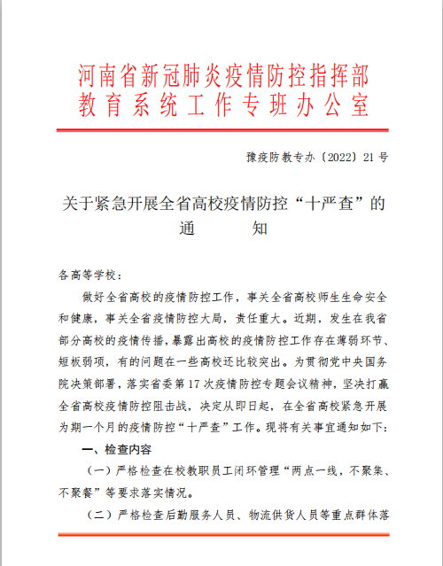 关于紧急开展全省高校疫情防控“十严查”的通知