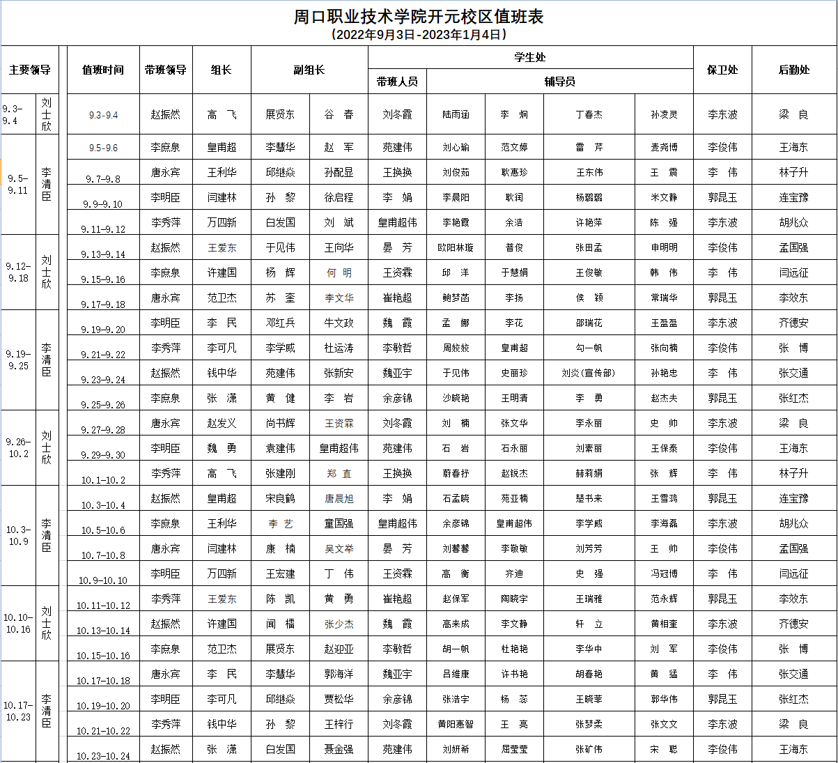 金年会jinnianhuicom开元校区值班表 (2022年9月3日-2023年1月4日)