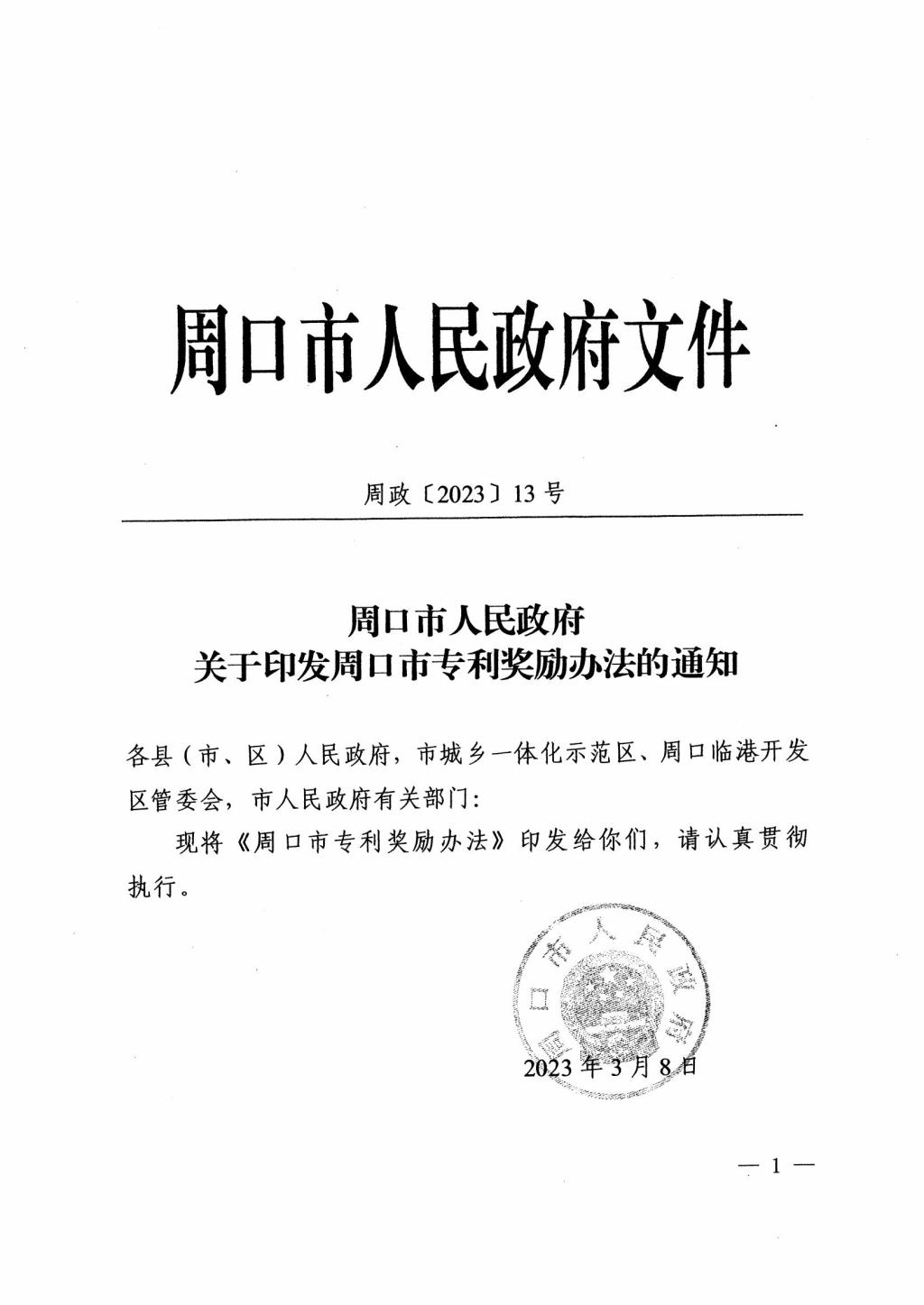周口市人民政府关于印发周口市专利奖励办法的通知.pdf