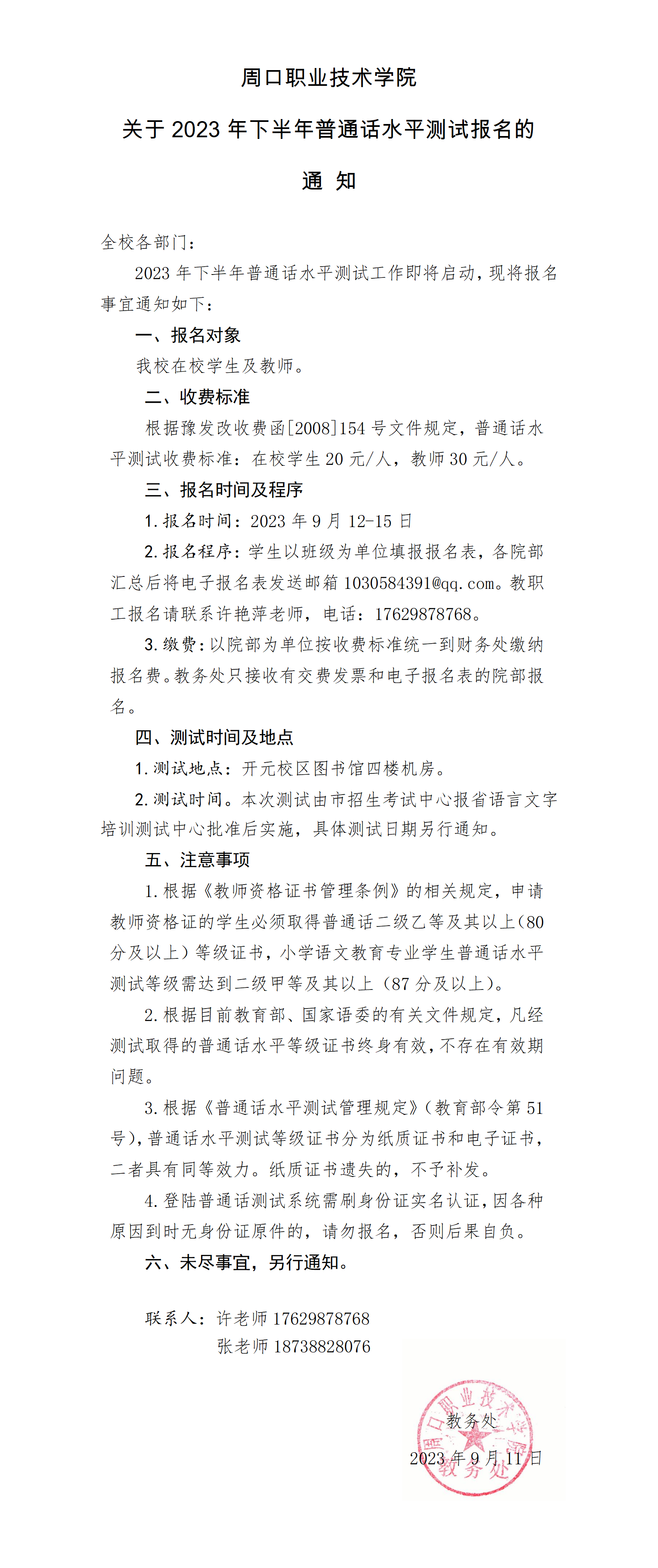 金年会jinnianhuicom关于2023年下半年普通话水平测试报名的通知