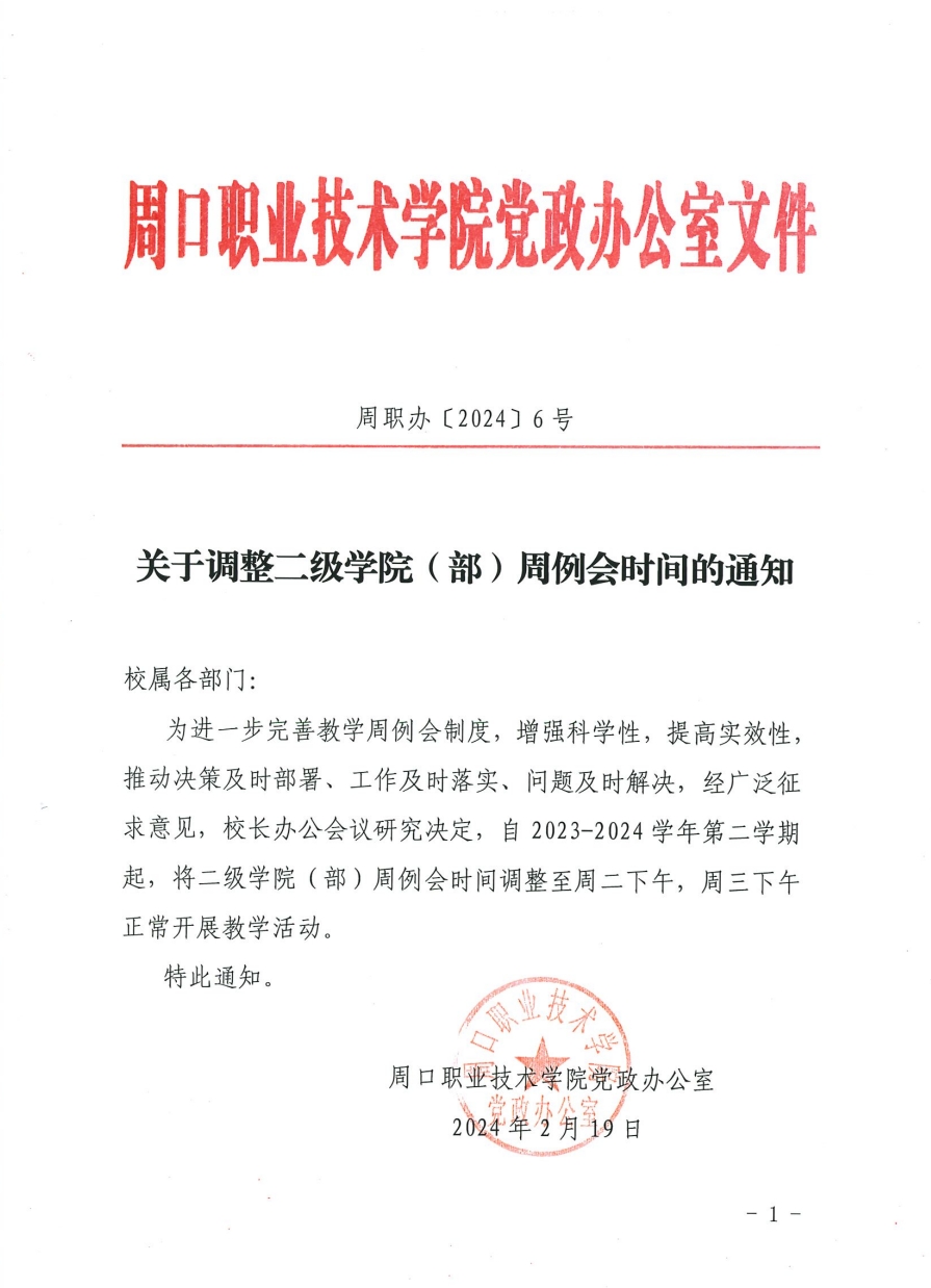 金年会jinnianhuicom关于调整二级学院(部)周例会时间的通知