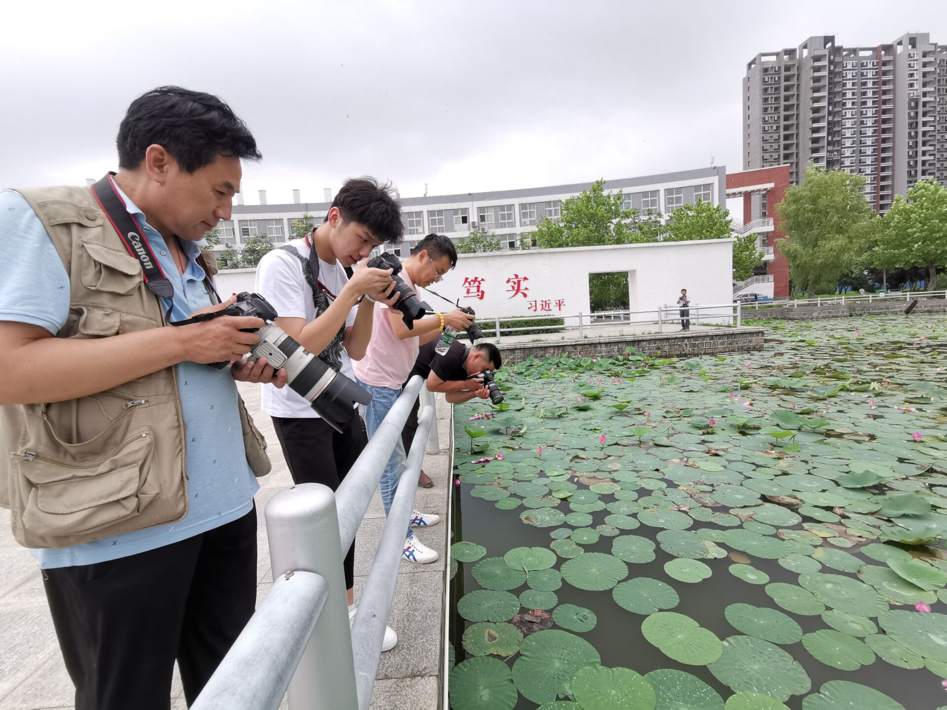 “出淤泥而不染,濯清涟而不妖,中通外直,不蔓不枝……”自古以来,圣洁的莲花就是文人雅士的最爱。又是一年荷花开,在金年会jinnianhuicom开元校区中心湖内,盛开的荷花成为一道独特的风景。6月20日下午,周口市青年摄影家协会一行10余人受邀前去开展采风活动。