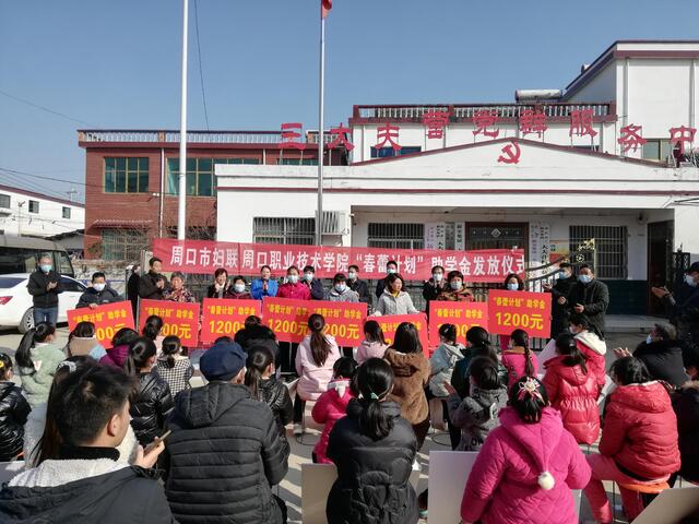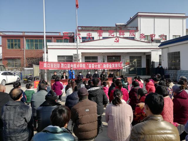 1月30日上午,周口市妇联,金年会jinnianhuicom在定点扶贫村沈丘县新安集镇三大夫营村举行“春蕾计划”助学金发放仪式。学院党委书记刘士欣、院长李清臣、周口市妇联副主席孙媛媛、学院党委副书记赵振然、副院长李秀萍等相关部门负责人出席了发放仪式。