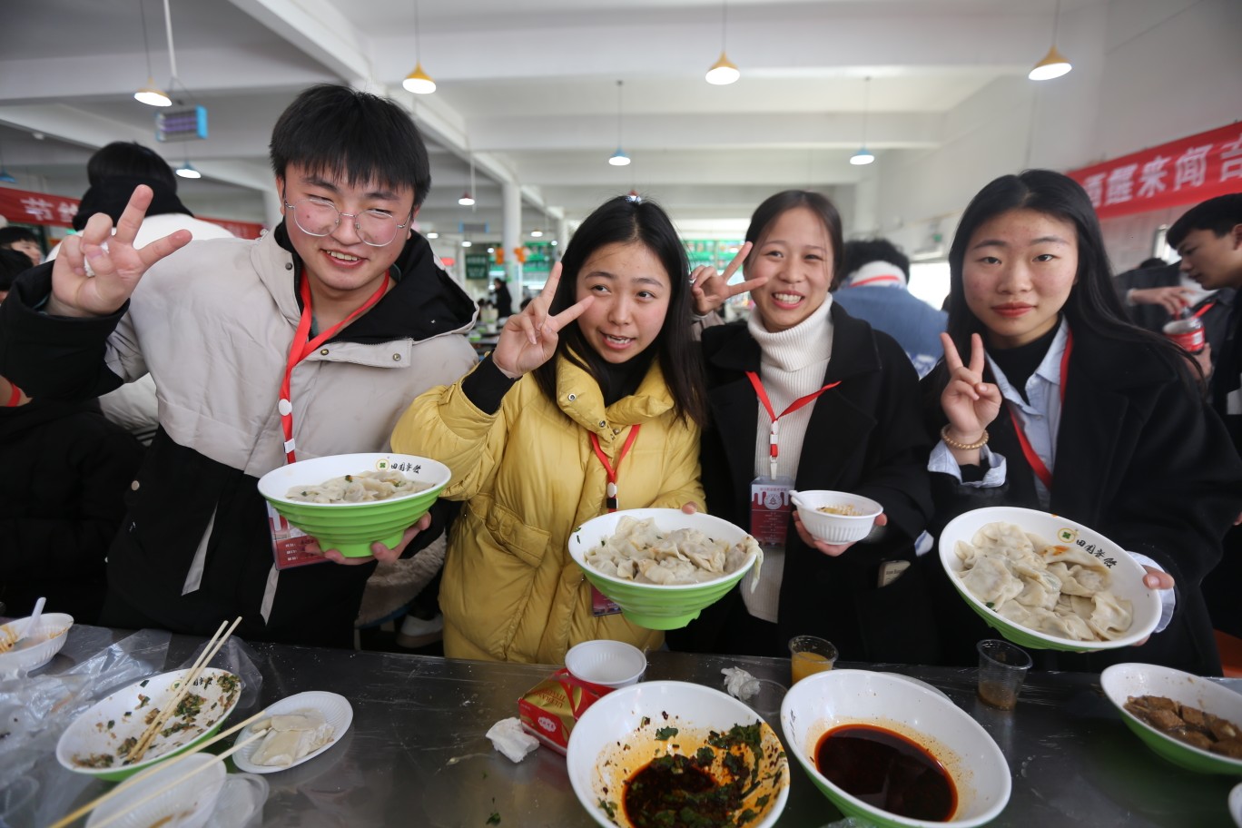 “饺子出锅喽!”随着一声叫喊,热气腾腾、香味扑鼻的饺子出锅,学生会的干部负责把饺子分发到每个小组,大家一起吃着饺子、看着节目,在欢乐祥和的喜庆氛围中,感受传统节日冬至带来的美好。
