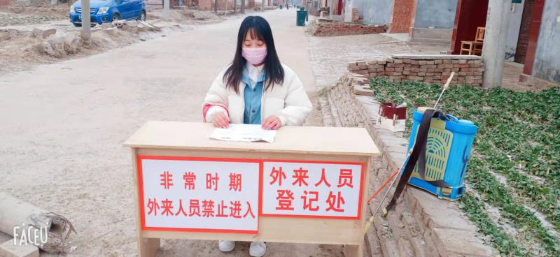 明素素,文化教育学院19级语文教育三班的学生,家在濮阳市范县陈庄镇程庄村,该村临近主要道路外来人员返乡居多途经该村。防控压力不言而喻。她主动请缨,在村口一线防范外来人员杜绝疫病进村。为疫情的防控献出自己的力量,在寒冷的室外,严控第一线,不抱怨,不退让。在这严峻的时期。展现了周职学子从未退缩的精神!