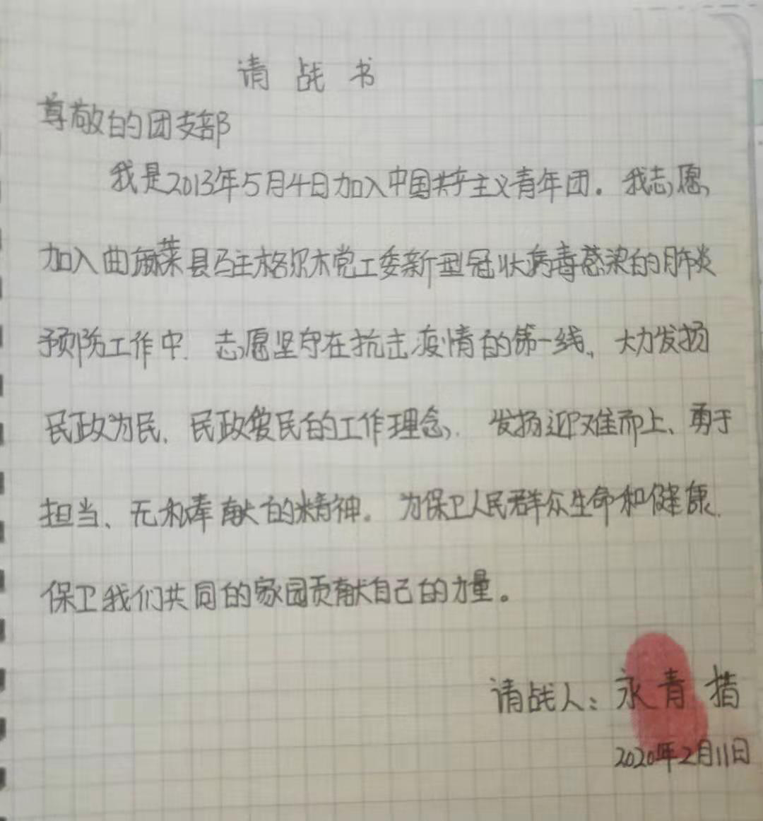 永青措,藏族,文化教育学院18级语文教育三班学生,主动请战加入青海省曲麻莱县驻格尔木检查站临时指挥部团员志愿队,并任副队长。疫情面前,主动请缨,危难之处显身手,彰显了一名优秀共青团员的风采。