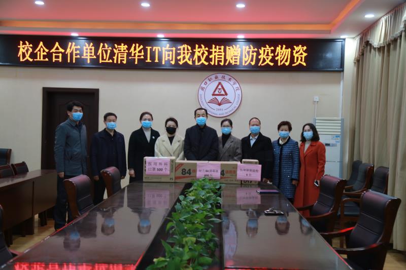 3月27日上午,信息工程学院校企合作单位清华IT驻金年会负责人王智华代表企业向金年会捐赠天坤额温枪6台、84消毒液400斤、医用外科口罩500个,以实际行动助力金年会抗击新冠肺炎疫情,守护学校师生健康。此举展现了该企业高度的社会责任感。金年会党委副书记、工会主席李森代表金年会jinnianhuicom校党委、全体师生对清华IT企业的爱心之举表示了诚挚的感谢。