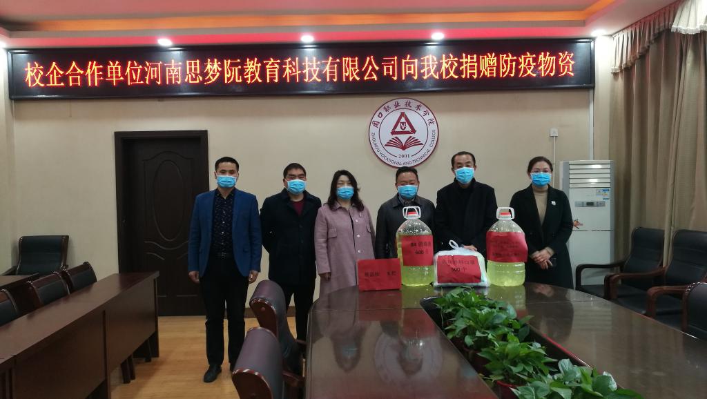 3月31日,校企合作单位河南思梦阮教育科技公司、北京商鲲教育集团分别向金年会捐赠额温枪、消毒液、防护口罩等防疫物资,以实际行动助力金年会抗击新冠肺炎疫情,守护学校师生健康。此举展现了企业高度的社会责任感,也表达了与金年会师生同舟共济的深厚情谊。金年会党委副书记、工会主席李森代表学校全体师生对这三家企业的爱心之举表示了诚挚的感谢。
