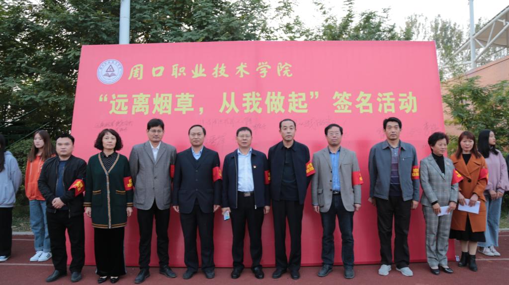 为积极响应金年会jinnianhuicom禁烟号召,创造文明、洁净、优美的校园环境,加强学生的安全健康教育,引导学生文明习惯养成,提升学生管理质量,2019年11月4日下午,以”远离烟草 从我做起”为主题的校园禁烟活动在开元校区体育场举行,校长李清臣、党委副书记李森、宣传部、团委、学生处、各二级学院党总支书记、辅导员和全体学生参加,活动由学生处处长李秀萍主持。