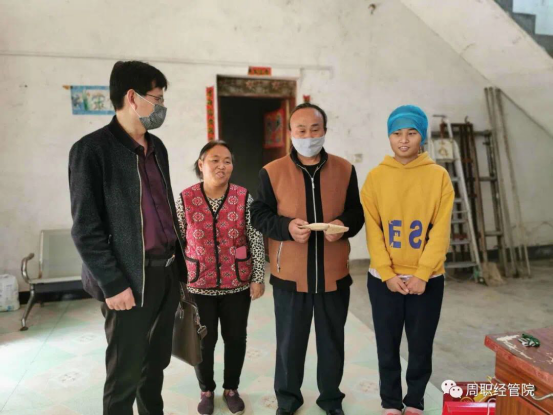 疫情期间金年会经济与管理学院19级电子商务专业王晓巧同学经历了一场生死考验,病痛的折磨让这个年轻的生命两天内经历了两次开颅手术。经管学院领导听到这个消息后,迅速组织该院教职工和学生为王晓巧同学捐款,随后院班子成员、辅导员带着大家的爱心远赴驻马店平舆县看望王晓巧同学。