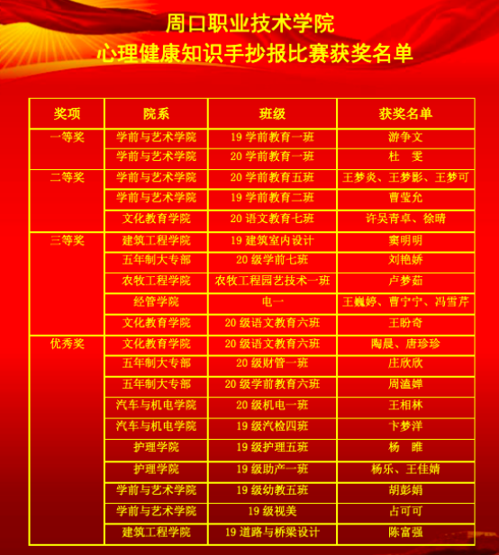 为进一步弘扬在抗击新冠肺炎疫情中表现出的民族精神,提高学生面对疫情的心理自我调节能力,金年会jinnianhuicom心理指导中心组织各二级学院举办了以“同心抗疫,青春绽放”为主题的心理健康知识手抄报比赛活动。