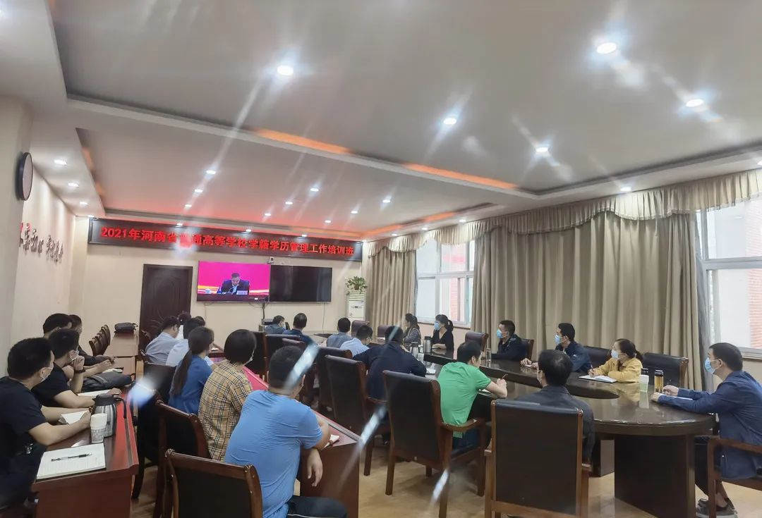 根据河南省教育厅《关于参加河南省普通高校学籍学历管理工作培训班的通知》要求,9月28日下午,学生处处长刘冬霞、副处长侯艳芳、学籍科科长晏芳,各学院学管副院长、学管办主任、学籍管理员在行政楼第三会议室参加了2021年河南省普通高校学籍学历管理工作培训视频会。
