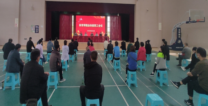 4月20日下午,体育学院召开全体教职工会议,全体教职工和外聘教师参加,党总支副书记王晖主持会议。