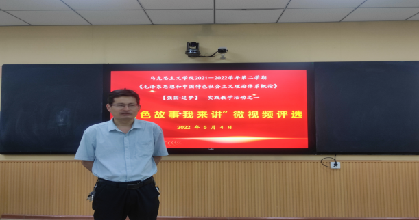 为喜迎党的二十大胜利召开,继承和弘扬红色精神,打造思想政治理论课教学品牌,提升思政课的时效性,5月4日下午,马克思主义学院毛泽东思想和中国特色社会主义理论体系概论教研室在宣传部、教务处及各二级学院的大力支持下,组织开展“红色故事我来讲”总决赛,活动以微视频的形式在开元校区录播室举行。马克思主义学院院长贾涛,副院长韩凤梅、许华锋,教管办主任范文婷,思政课教师代表及马克思主义知行社成员担任比赛评委。