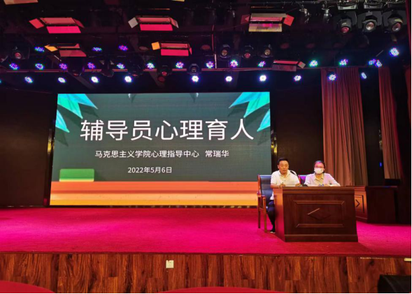 为加强疫情防控常态化形势下大学生心理健康教育,提高辅导员心理健康水平和心理调适能力,宣传普及心理健康知识,5月6日下午,国家二级心理咨询师、马克思主义学院心理指导中心主任常瑞华在学前与艺术教育学院演播厅为学校全体辅导员开展《辅导员心理育人》专题讲座,讲座由学生处副处长苑建伟主持,马克思主义学院院长贾涛、学生处处长刘冬霞、各二级学院学生管理办公室主任、专兼职辅导员聆听了讲座。