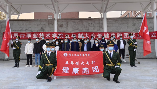 致辞后,五年制大专部健康跑团正式成立。全体成员列队整齐,精神饱满,在团旗的引领下,迈着矫健的步伐,跑步开启新征程。