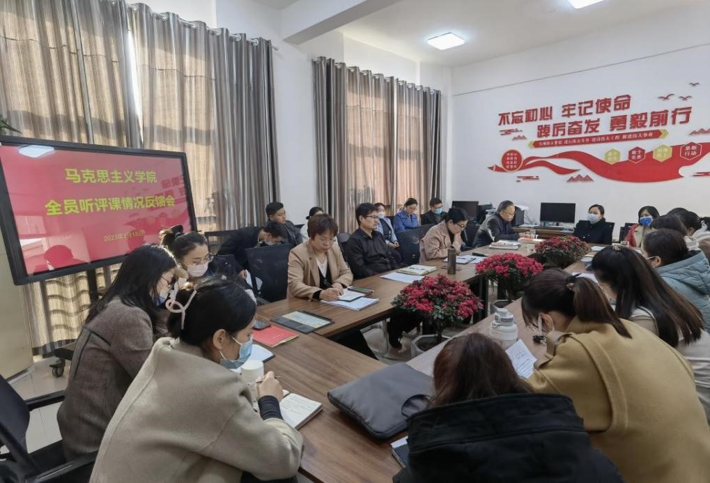 为深入贯彻落实党的二十大精神,进一步落实立德树人根本任务,深入推进思政课教学改革,强化思政课教学过程管理,提升思政课教学质量,3月15日下午,马克思主义学院在行政楼三楼3353会议室召开全体教职工会议。马克思主义学院院长贾涛,教管办主任范文婷、心理指导中心主任常瑞华及全体教师参加了会议,会议由副院长韩凤梅主持。