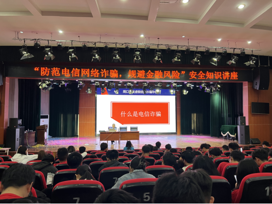 宋东营围绕当前形势、诈骗类型及案例、防诈提醒、防诈有效方式和方法、其他安全提醒等几方面,重点介绍了现实生活中诈骗案例、防诈方式方法、学生容易受骗的“网络游戏产品虚假交易诈骗”“冒充熟人诈骗”“社交软件交友”“网络购物”等多种电信网络诈骗,以案说法,多方阐述,使学生深入了解各种电信网络诈骗防范知识。宣讲过程中,宋东营还与学生亲切互动,让学生学有所得、学有所思。同时,利用“淘宝刷单诈骗”“贷款诈骗”等典型案例为现场师生还原案情,“身临其境”了解各类网络诈骗惯用招数,积极引导师生下载“国家反诈中心”APP,及时接听“96110”反诈专线。