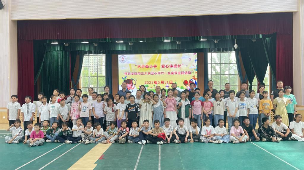 学校体育学院体育教育专业师生带领三大夫营同学们开展健身操、排球、跳绳等体育游戏和竞技活动,并手把手辅导同学们使用健身器材。通过此次活动,既使孩子们感受到体育运动的魅力,激发了自身潜能,又培养了勇敢、乐观、团结协作的良好品质。孩子们在体育活动中体验合作与交流的快乐,度过了一个难忘的“六一”国际儿童节。